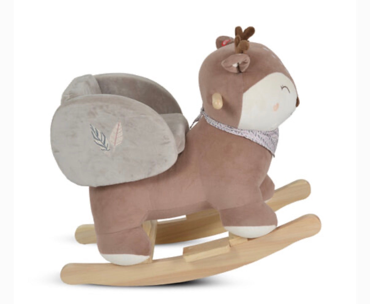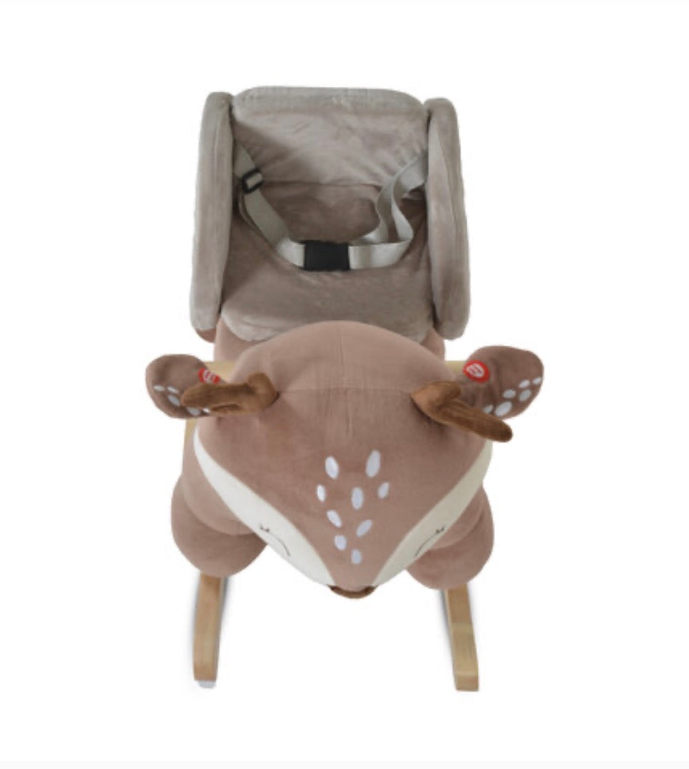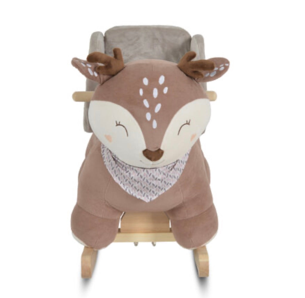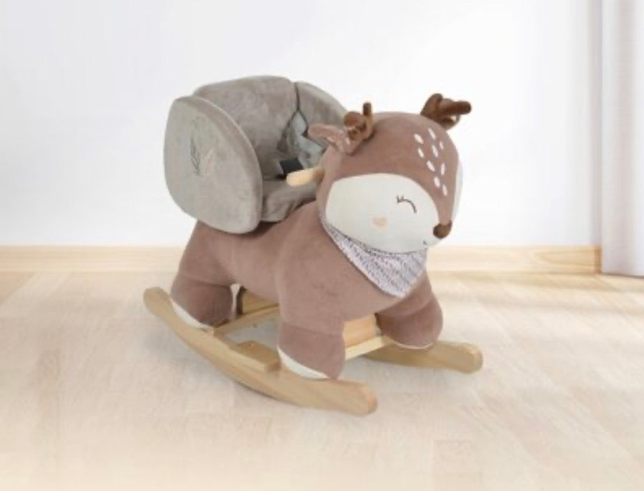 Questo dondolo in peluche a forma di cervo, modello Daphne, è perfetto per i bambini coraggiosi! Confortevole e sicuro, consigliato a partire da 12 mesi. Realizzato con una struttura stabile in legno di pioppo e acciaio, per far sfidare il tuo bambino in totale sicurezza!