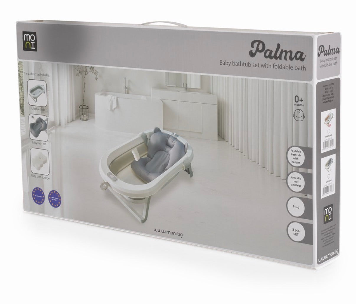 Goditi il momento del bagnetto con il set da bagno per neonati Palma! Composto da una vaschetta pieghevole, un morbido cuscino (43x33 cm) e una spugna, questo set è adatto ai neonati da 0+ mesi. Con un design compatto e sicuro, la vasca ha una base antiscivolo, possibilità di montaggio a parete, piedini antiscivolo e foro di scarico con tappo per un facile drenaggio dell'acqua. Realizzato con materiali di alta qualità, regala al tuo bambino un bagnetto sicuro e divertente. Dimensioni: 75×42,5×18,5 cm.